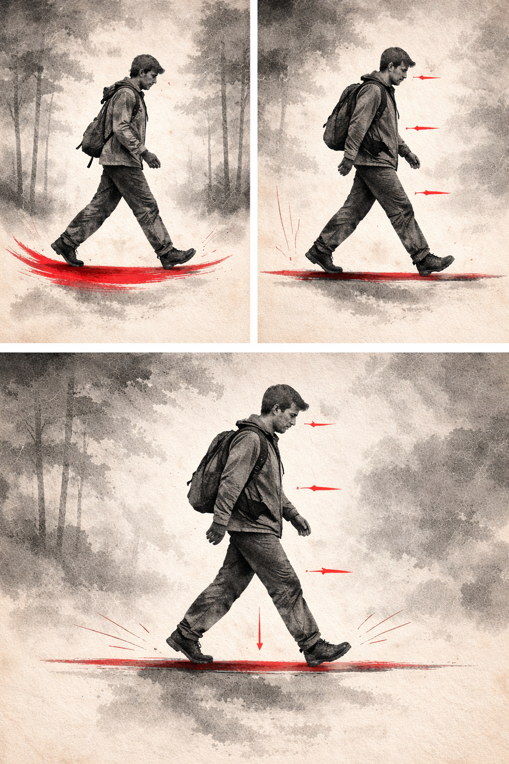 Есть парадокс: когда человек по-настоящему «ловит» свой вес, его походка становится лёгкой. Наблюдателю кажется, что он проскальзывает. Но это не бегство от земли — это согласие с ней. Когда вы перестаёте сопротивляться гравитации, она начинает вас не давить, а нести.